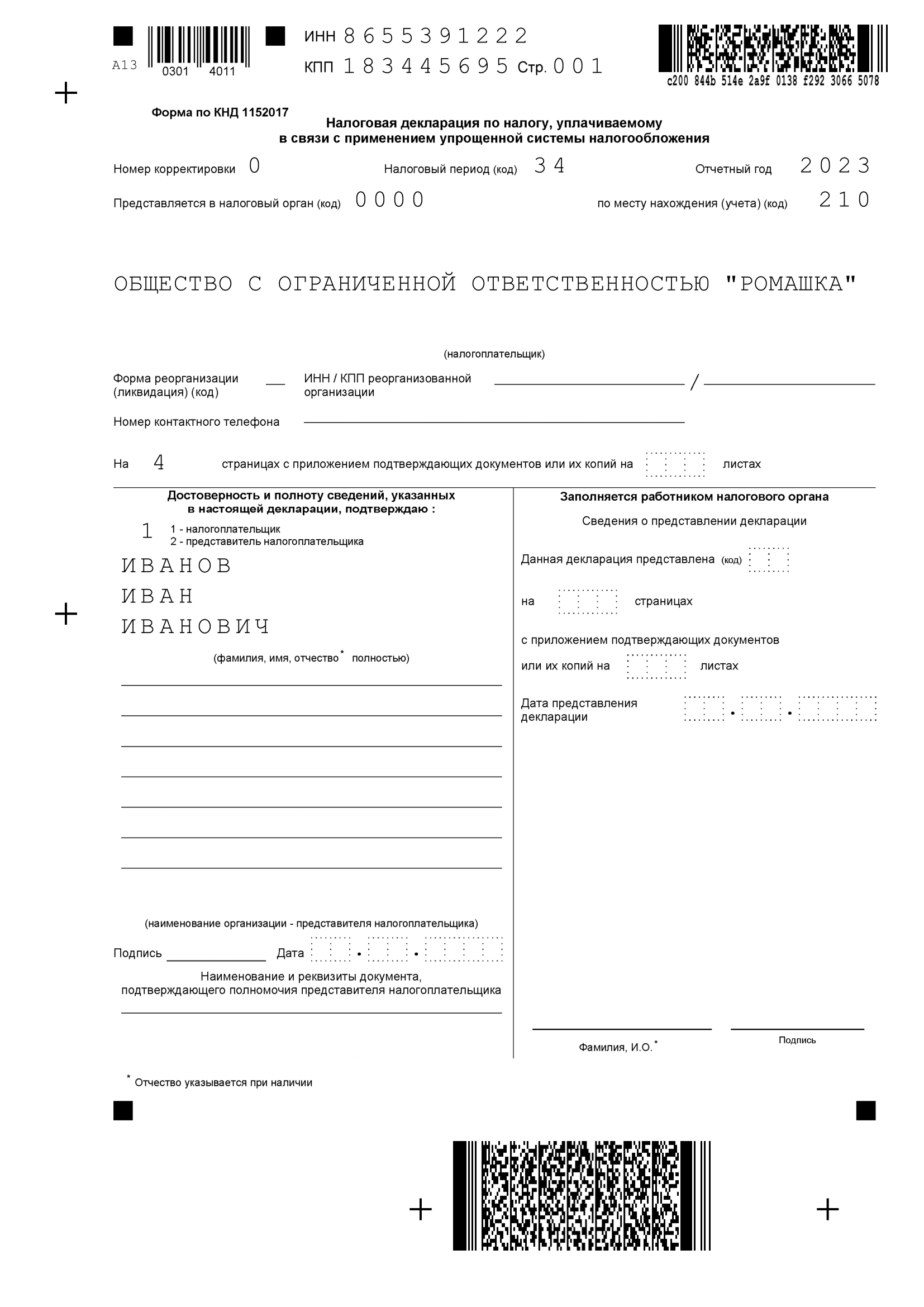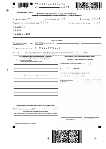 Бланк декларации УСН в 2023 году - КНД 1152017