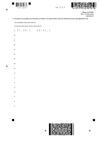 Чтобы исключить дополнительные коды ОКВЭД, необходимо заполнить страницу 2 листа Д.