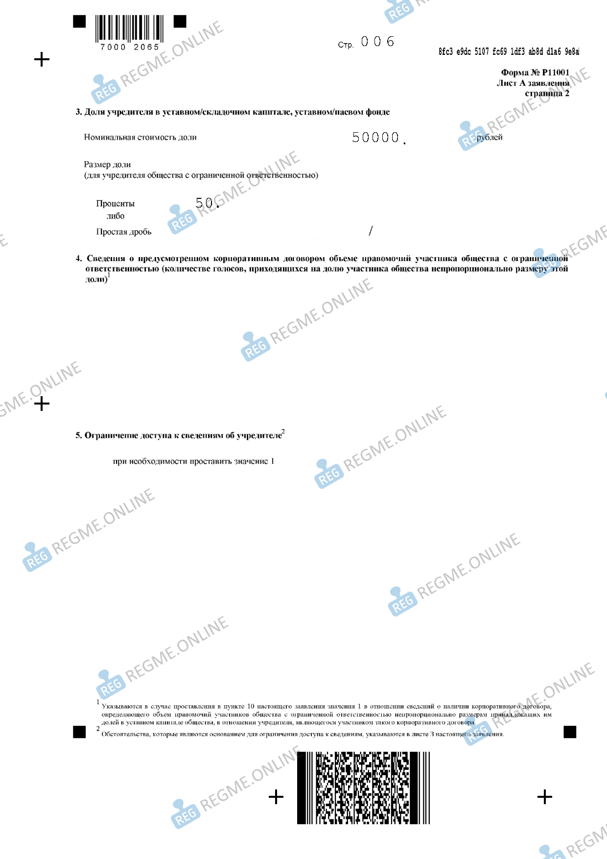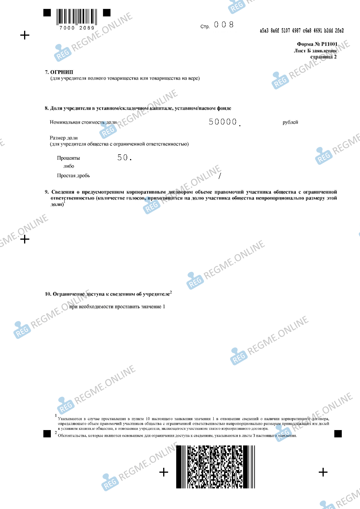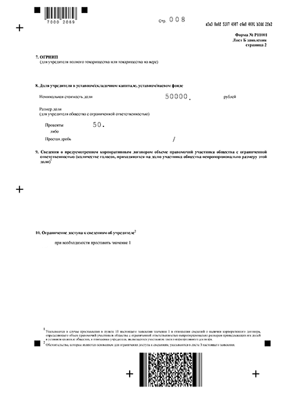 Заполнение Р11001 для регистрации ООО - постраничный пример
