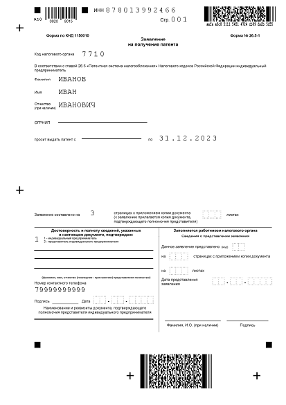 В заявлении допущены существенные ошибки — неправильно указан период действия патента, пропущены обязательные поля, неверные коды деятельности.