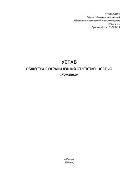 - На титульном листе укажите, что устав утверждается протоколом общего собрания участников ООО