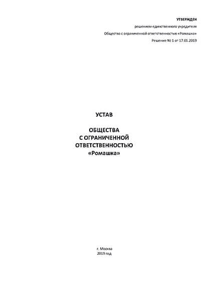 Пример устава ООО для одного учредителя
