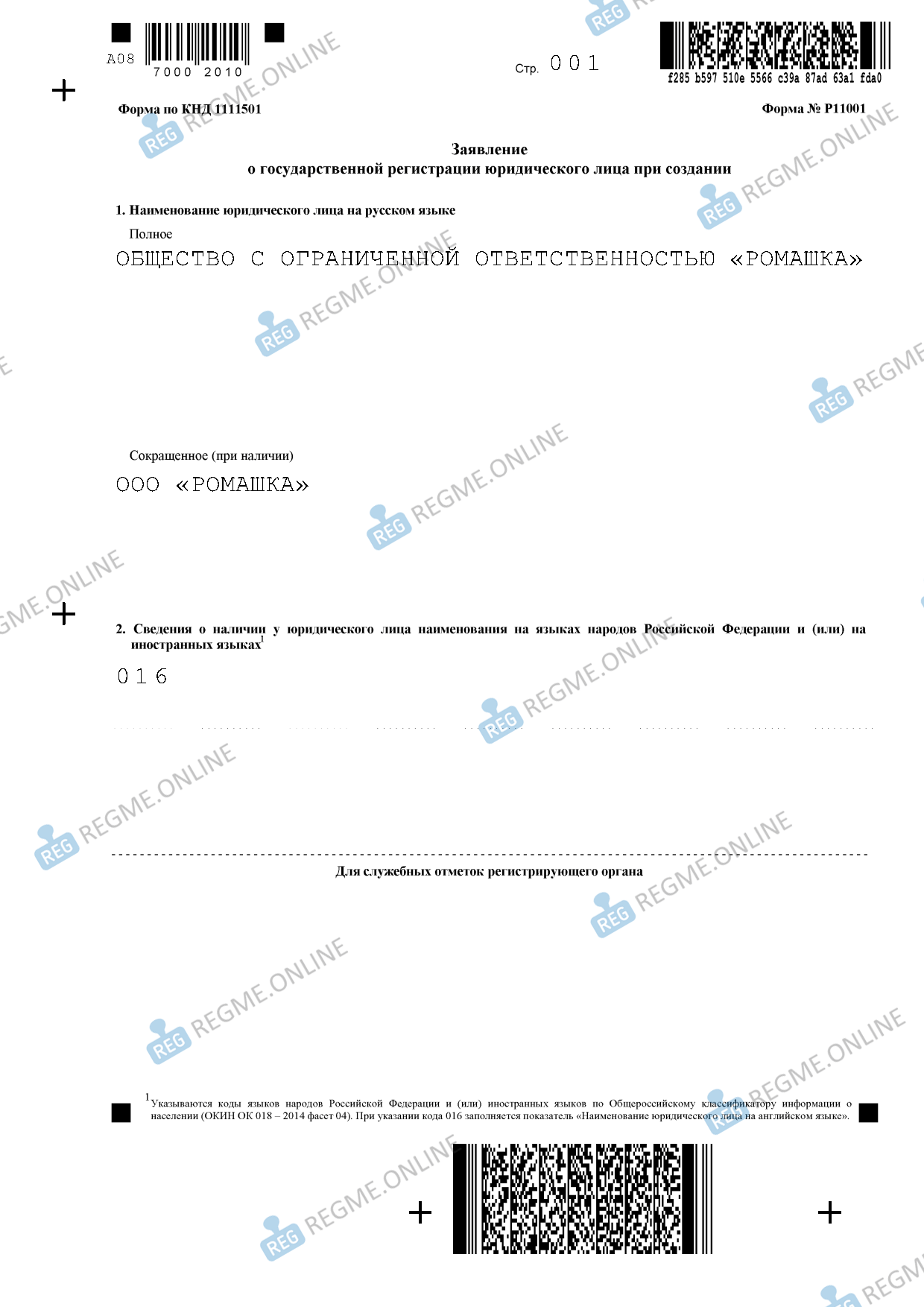 Само название не указывайте, исключение - английский язык (код 016). На нем указываются и полное, и, при наличии, сокращенное дополнительное название общества.