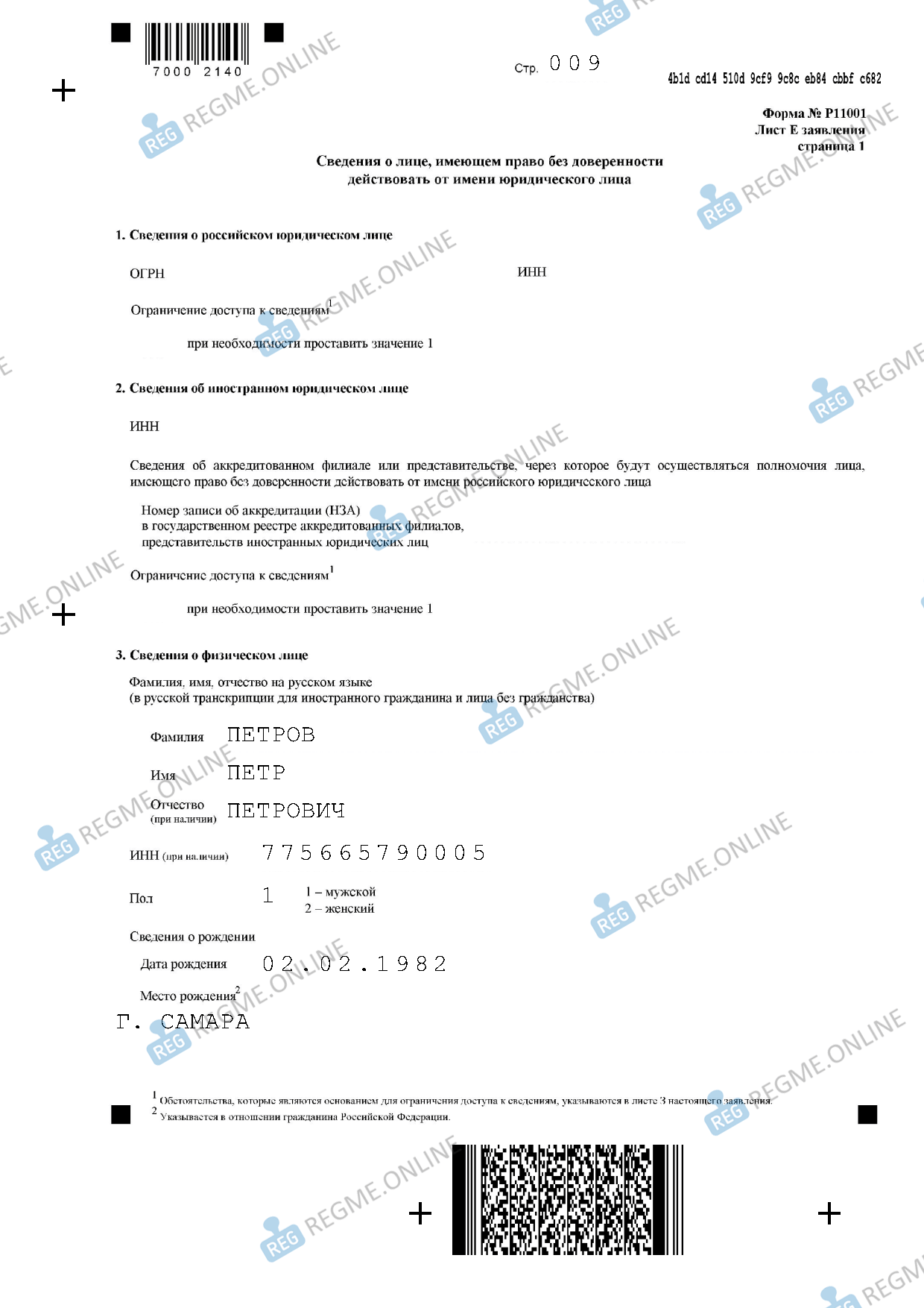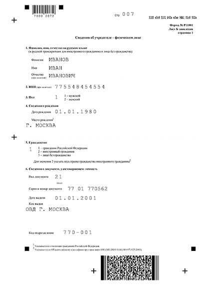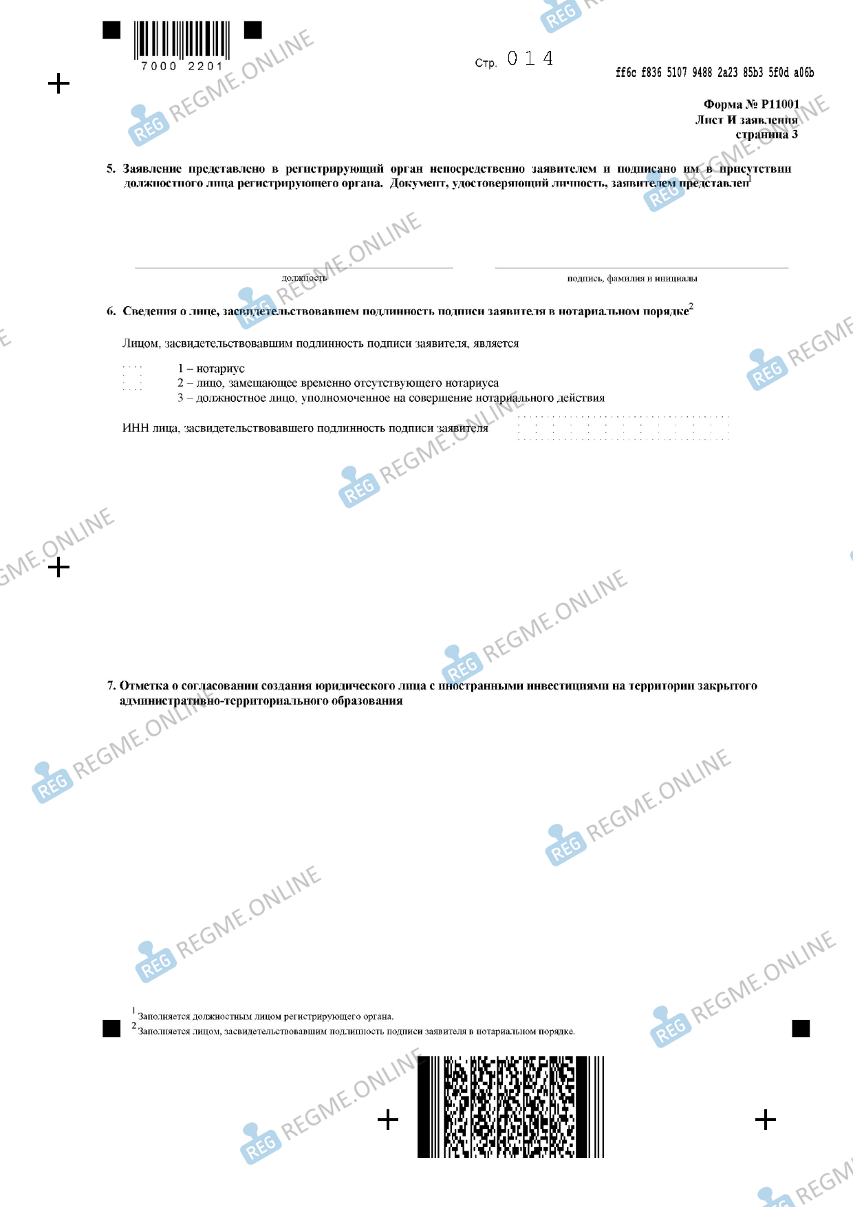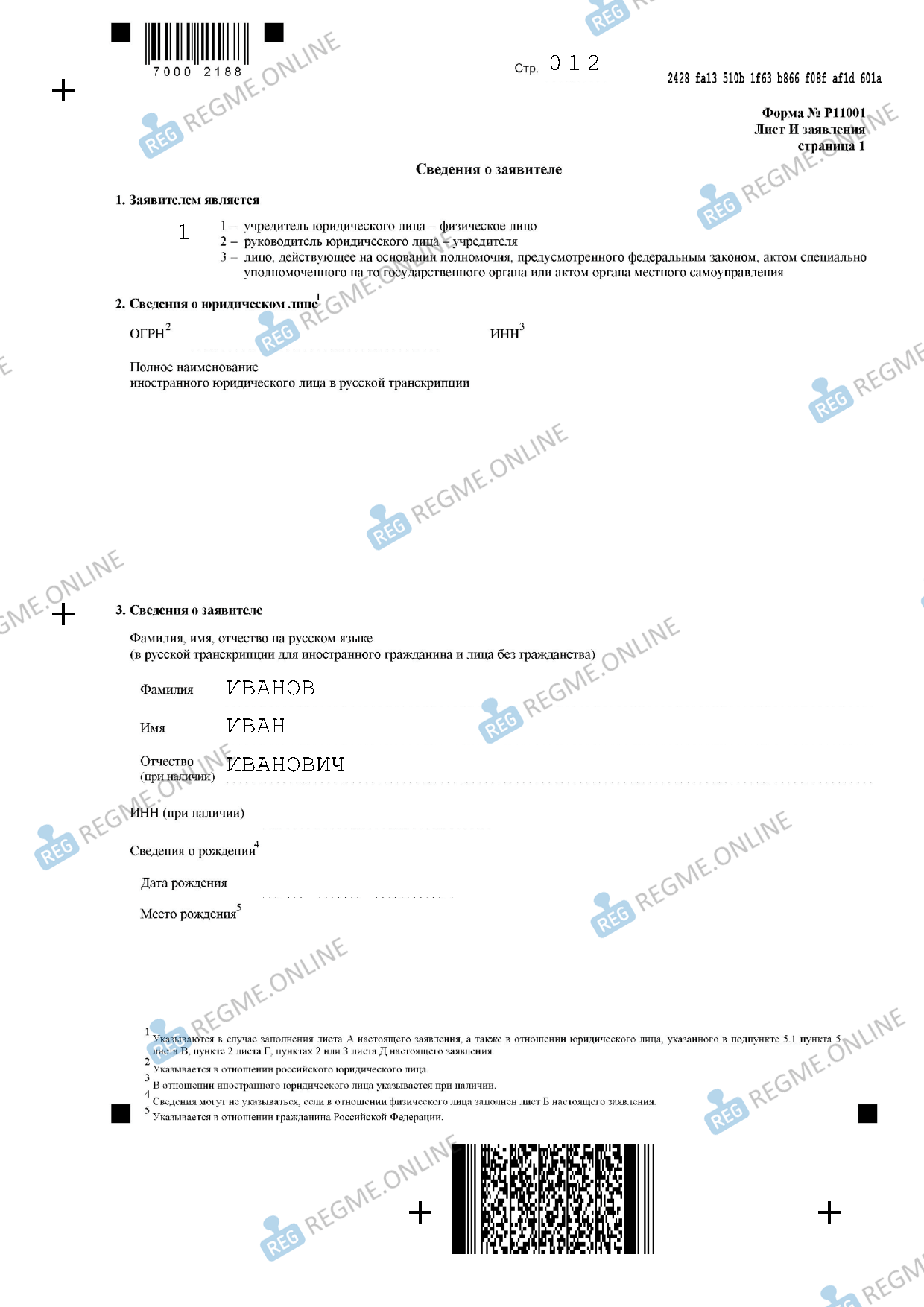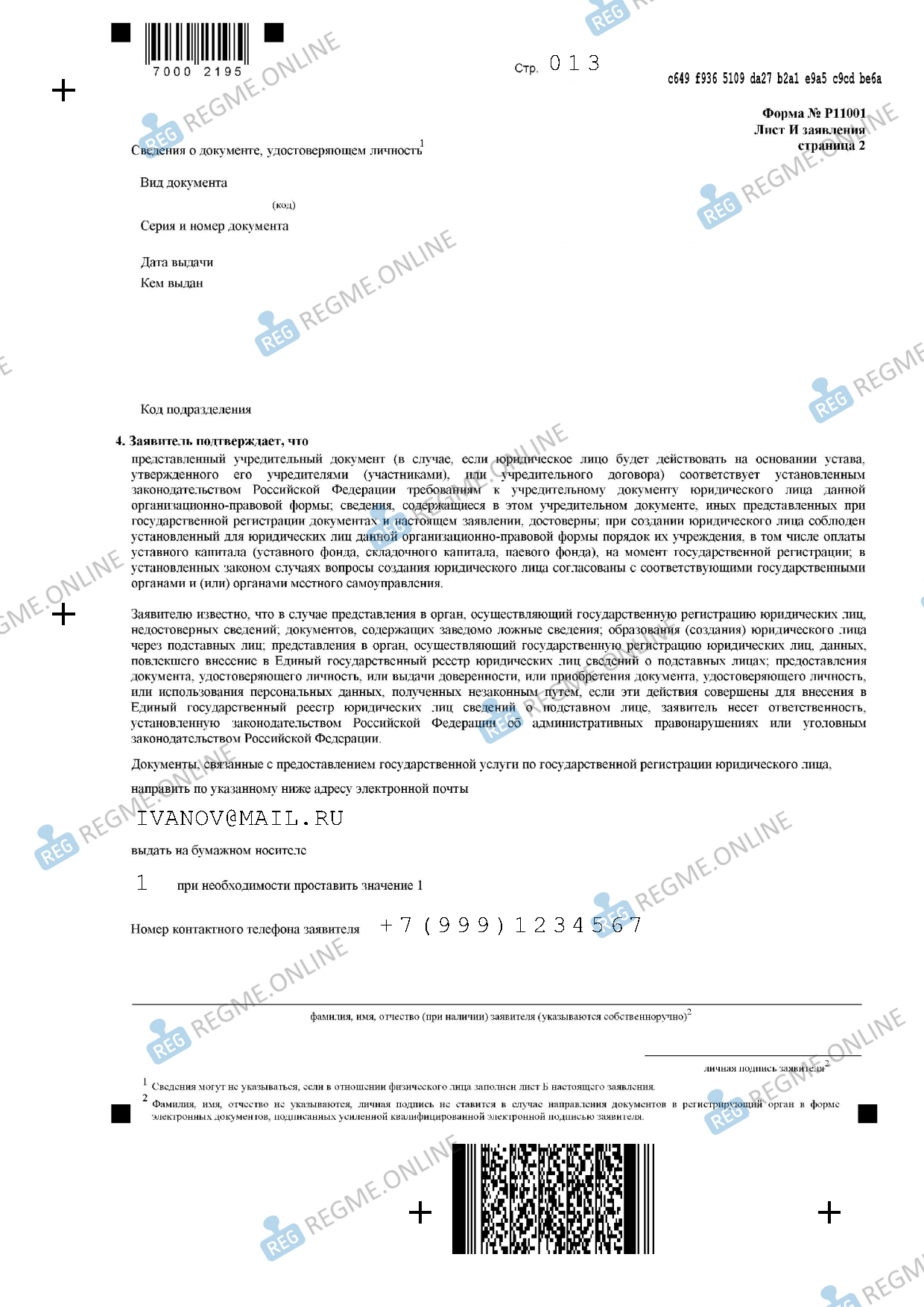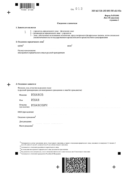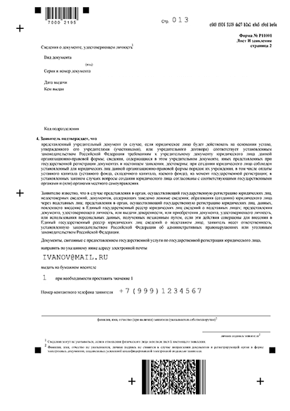Пример заявления Р11001 для нескольких учредителей - Создать заявление