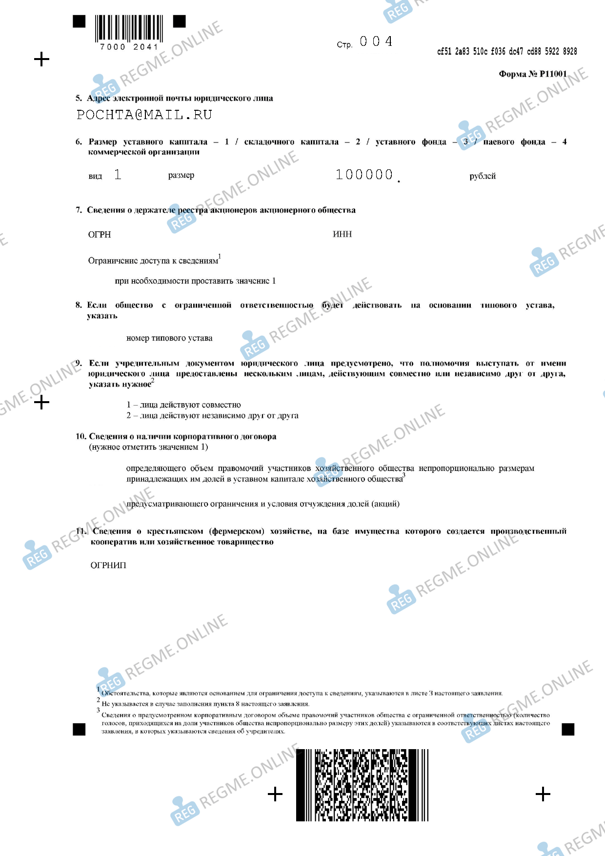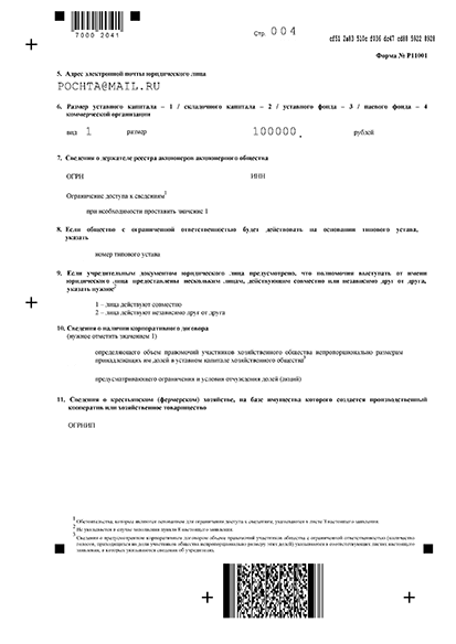 В пункте 4 укажите адрес электронной почты — на него налоговая пришлет документы о регистрации ООО.