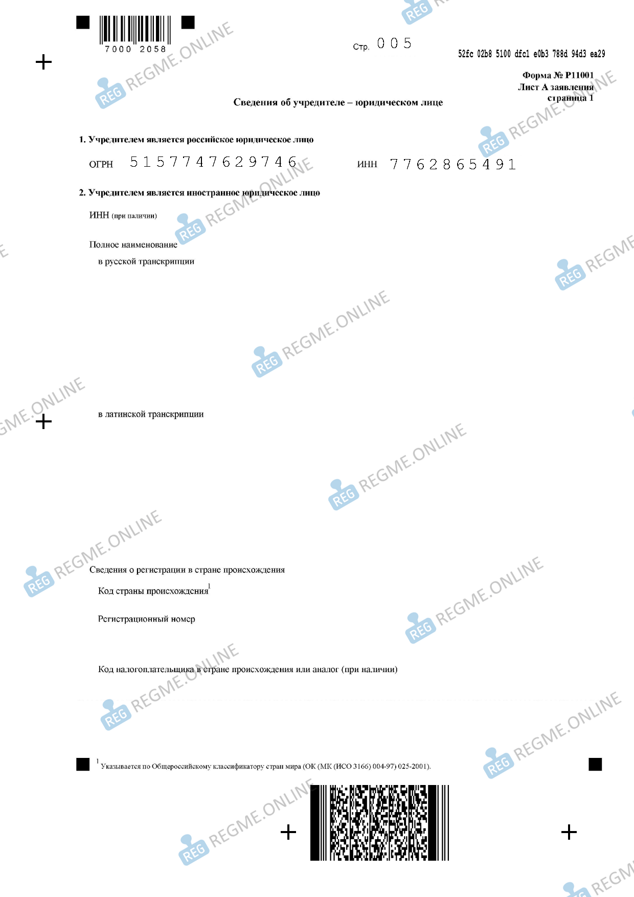 Лист А подойдет, если ООО учреждает юридическое лицо. Для российской организации заполняется пункт 1, для иностранной - пункт 2.