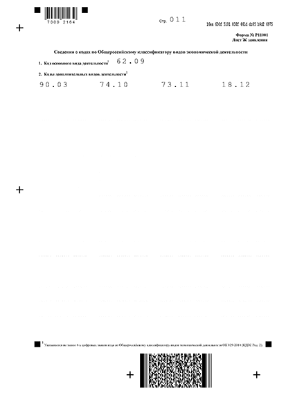 На 2026 году актуальный справочник для выбора кодов видов деятельности - ОКВЭД-2. Учтите, основной вид деятельности может быть только один - который приносит наибольший доход. А количество дополнительных кодов ОКВЭД не ограничено. Если не умещаются все коды на одном листе, распечатайте и подготовьте еще листы Ж.