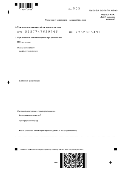 Эти страницы обязательно нужно заполнить, вне зависимости от состава участников организации. В них нужно указать наименование компании (полное - обязательно, сокращенное - при наличии), ее юридический адрес, а также видимый публично в ЕГРЮЛ адрес электронной почты, размер уставного капитала, данные об использовании типового устава и взаимодействии нескольких руководителей, информацию о корпоративном договоре. Вне зависимости от количества учредителей, эти страницы заполняются в одном экземпляре.